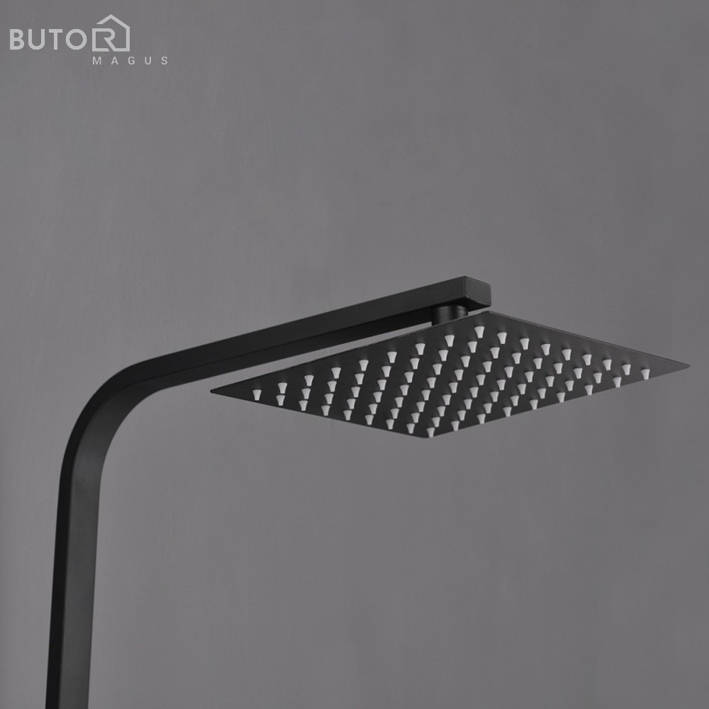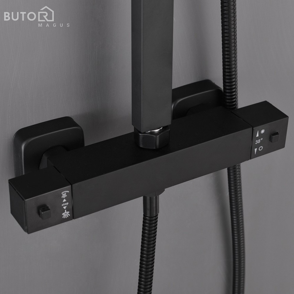 A Mazama black termosztátos zuhanyszett minden képzeletet felülmul funkcionalitása és letiszult formájának köszönhetően. A Mazama zuhanyszetthez jár egy mechanikus zuhany csaptelep hőmérséklet-keverővel, szabályozással és egy vízáram-kapcsoló az esőzuhany és a zuhanyfej közötti váltás érdekében. A kézi zuhanyfej, az 1,5 m-es zuhanytömlő és az esőztető ABS-ből készült,mely fekete színnel van borítva. A szett elegáns esőzuhanyt és zuhanyfejet tartalmaz. A zuhanyszett fekete teste rozsdamentes acélból lett létrehozva, magassága állítható (800-1200 mm).A zuhanyszettet a talajtól 85 cm-re ajánlott felszerelni. Ezzel a csapteleppel élvezet lesz a zuhanyzás. A megjelenésén kívül nagy előnye, hogy kézi zuhannyal és trópusi esőztetővel is fel van szerelve. A trópusi esőztető megkönnyíti a mindennapokat és még kellemesebbé varázsolja a tusolás élményét.